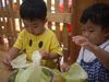 説明をきいて、材料を一つ一つ確認しながら、ビニール袋に入れます
