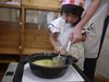 ・手首を使って焼いている生地をひっくり返す体験をしよう!